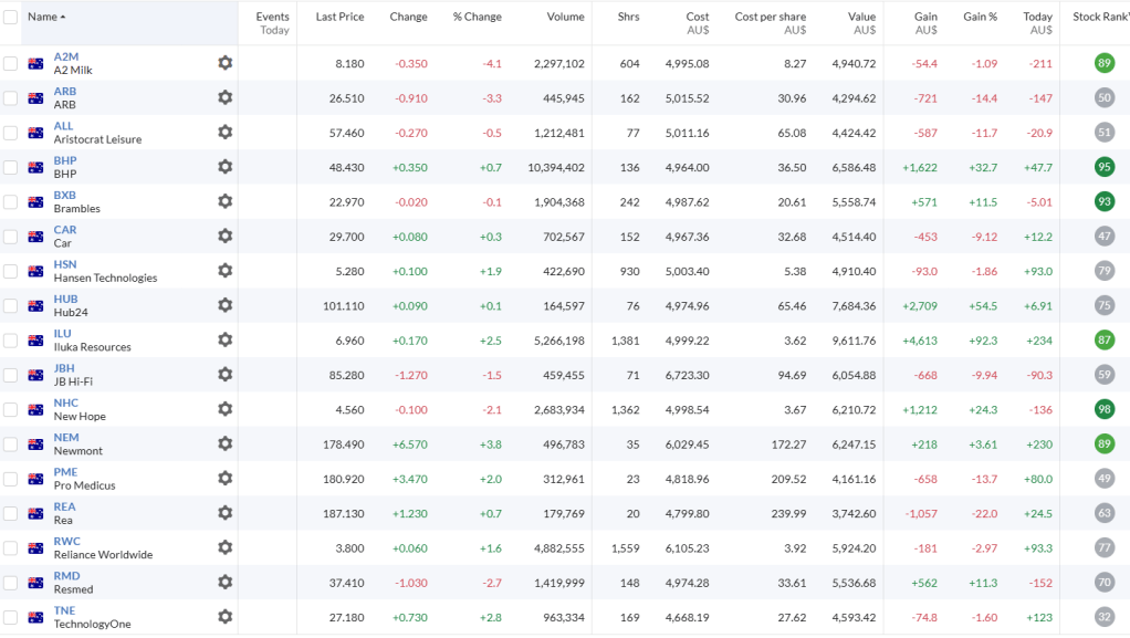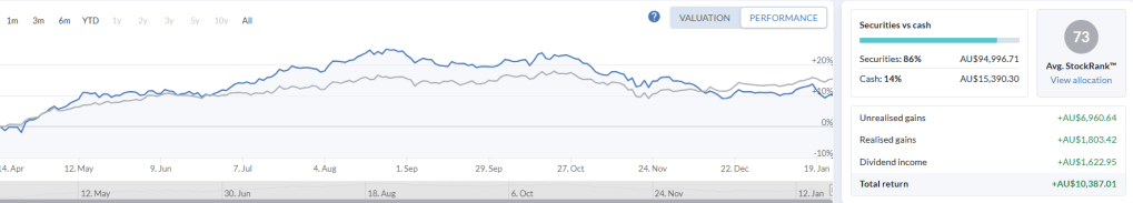 Started out with 100k equal weighting invested over 20 ASX300 Stocks
