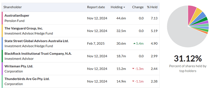 The top shareholders account for 31.12% of issued shares and their largest shareholder holds 7.13%. Of note, the top four shareholder are some of the biggest names in the investment and superannuation industries.