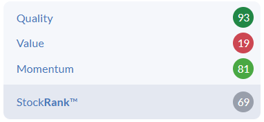 Looking at ALL’s stock rank numbers, this performance has not been lost on the market. With quality sitting at 93 and value at 19. Indicating the market sees ALL as a high performing stock but you have to pay to play, as the valuation is not cheap. Momentum does look to be on ALL’s side and has driven their share price to all-time highs in FY25. All up, this results in an overall StockRank of 69, with the valuation figure of 19 bring their StockRank number down for a company of this quality.
